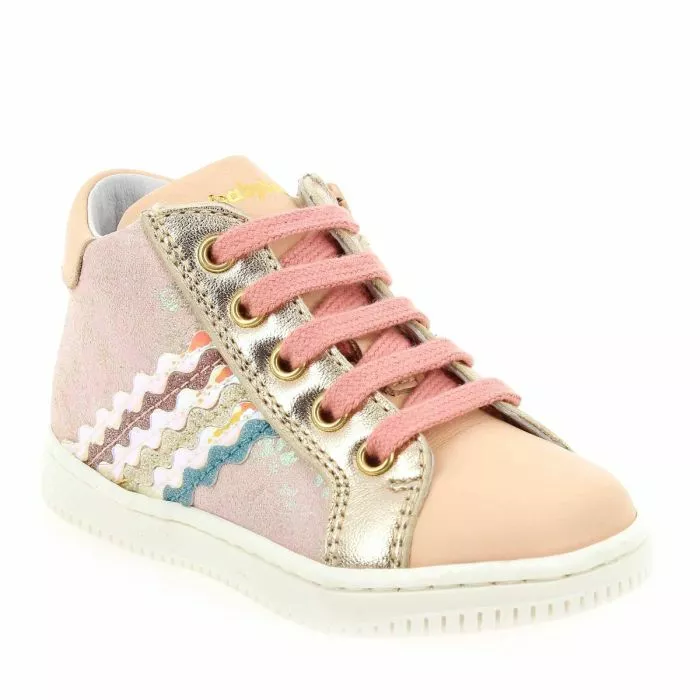 Qu’elles soient en version rose ou platine, ces adorables bottines feront battre les cœurs des mamans et de leur mini miss ! En effet, la marque propose un modèle plein de fantaisie avec son joli mix de cuirs et de couleurs. L’imprimé bucolique ou métallisé, ainsi que les empiècements “glitter” accentuent son allure à croquer. Soignée sous toutes les coutures et fruit d’un savoir-faire artisanal, cette paire de bottines “Made in Italy” combine avec brio qualité, confort, bien-être et style ! En plus des lacets, un zip intérieur a été ajouté pour plus de praticité. Que dire de plus ? Ces “FATY” feront naître des étoiles dans les yeux de votre princesse !