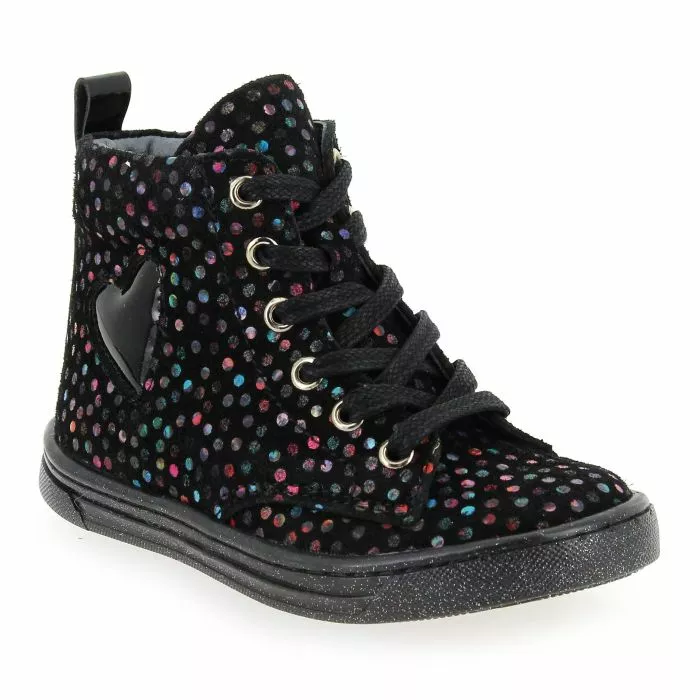 “Girly” à souhait, ces adorables bottines signées Bellamy sauront séduire toutes les miss ! En effet, la marque française et spécialiste de la chaussure enfant, met tout son savoir-faire dans ses créations. Ici, elle fait l’unanimité avec cette irrésistible bottine en cuir noir et ses pois métallisés. Sur la tige, un petit cœur à l’aspect vernis renforce son allure à croquer. En plus d’être stylées, ces chaussures Bellamy sont très confortables et s’adaptent à la morphologie du pied. En effet, elles sont dotées d’un système de chaussant évolutif qui garantit un usage prolongé des chaussures. Pour plus de praticité, un zip intérieur a été ajouté en plus des lacets. Rien à redire : Bellamy est le meilleur ami des petits pieds…