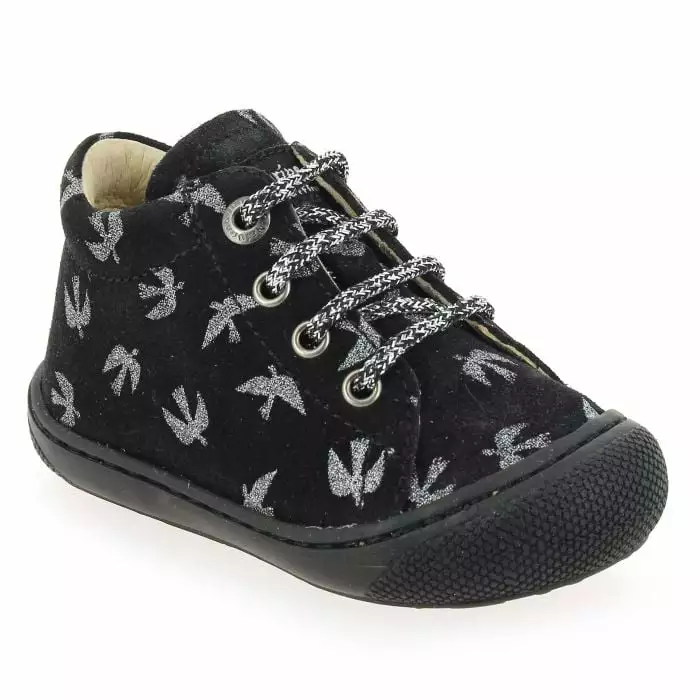 Déclinées en une jolie palette de couleurs, ces bottines font le bonheur des mini miss ! Craquantes et « girly », cette version en cuir velours marine se parent d’une ribambelle d’hirondelles métallisées. Italienne, la marque met tout son savoir-faire dans ses créations. Son but ? Offrir à votre petite puce, des chaussures alliant à la perfection style, qualité, confort et sécurité. Chaussant souple, renfort arrière, bout renforcé, semelle antidérapante : tout y est pour protéger ses petits pieds sans la stopper dans ses mouvements ! Les lacets assurent un réglage parfait, ainsi qu’un bon maintien. Que dire de plus ? Ces petites merveilles « Made in Italy » sublimeront tous les looks de votre princesse…